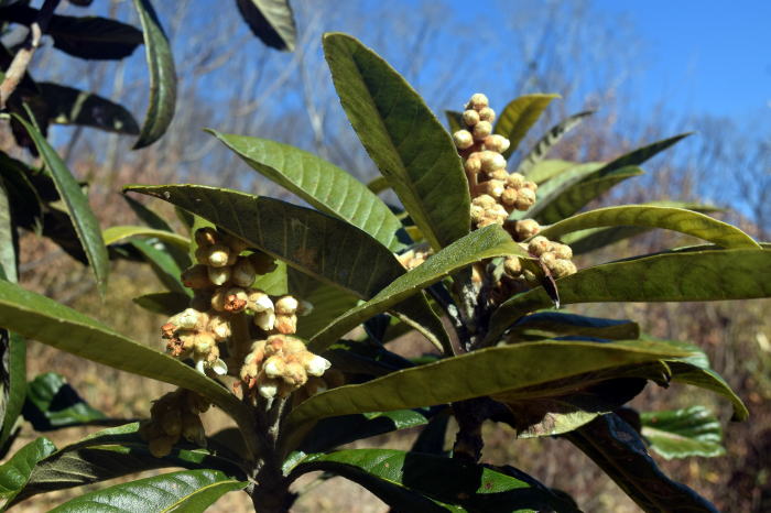 真冬に咲く琵琶の花、夏に実がなるのが楽しみです